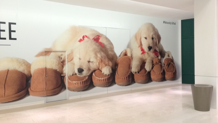 Some of our adorable Goldiva pups were featured on a 55′ wall mural at the entrance of LL Beans at the Mall of America, MN – December 2016. Have a look for yourself!