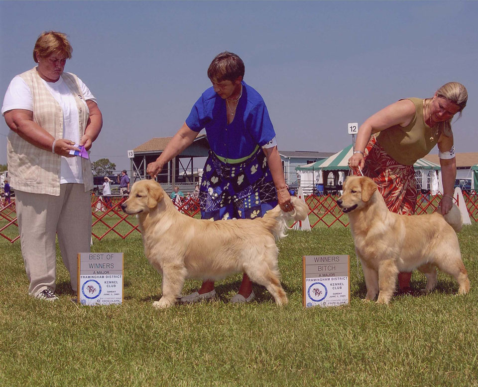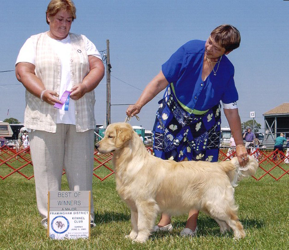 6/05 Striker earned a 4 Point Major in the AKC Puppy 6-9 class at Framingham District Kennel Club in Wrentham, MA handled by Jeanette Gould. This was his first dog show ever!! His sister Bonita, also won a 4 Point Major. There were 110 dogs competing. We were so thrilled! He is truly amazing!!