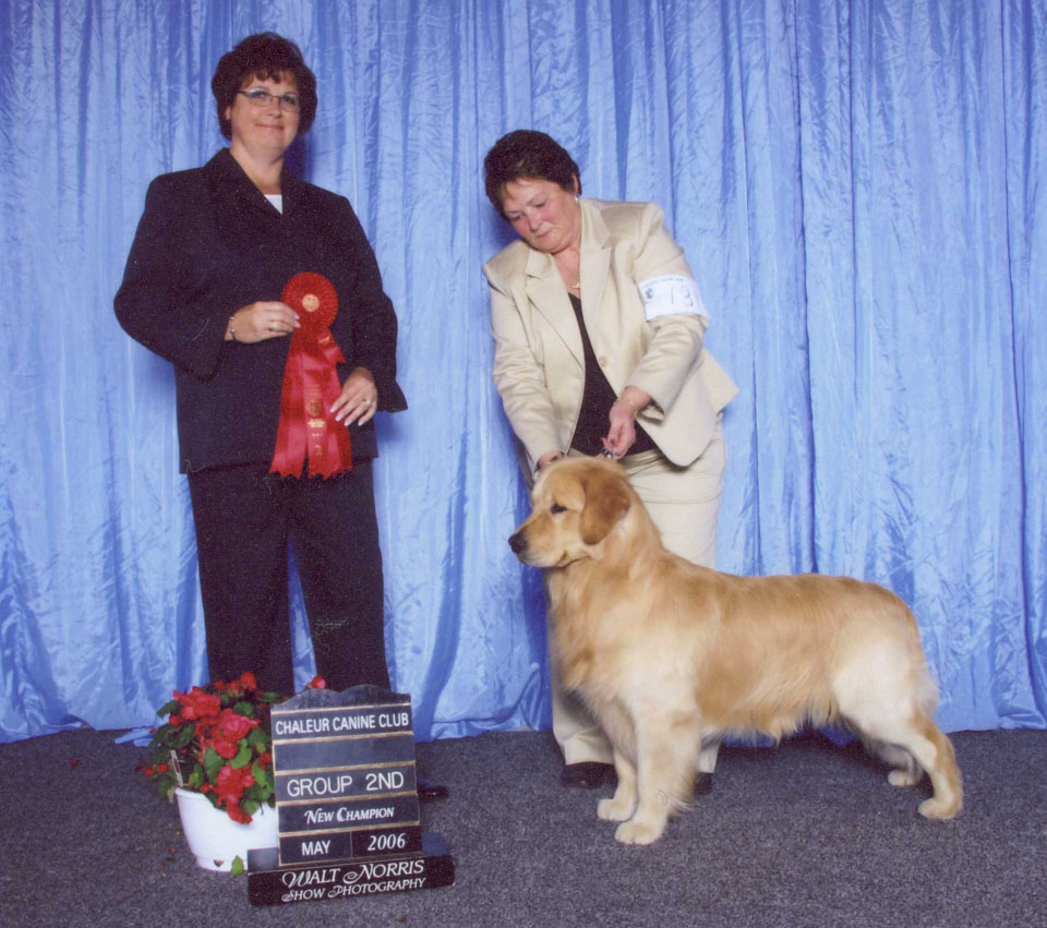 5/29/06 Memorial Day, Striker finished his Canadian Champion title in 2 weekends of shows in Amherst & Beresford with our handler, Katherine Hanson!! He came home with 23 ribbons!! In Amherst, he took 3 Winners Dog for 1 point each and Best of Winners for 3 points. Then in Beresford, he took 3 Winners Dog for 1 point each and finished with Best of Breed (over 4 Specials) & Group 2 for 5 points, totalling 13 points!